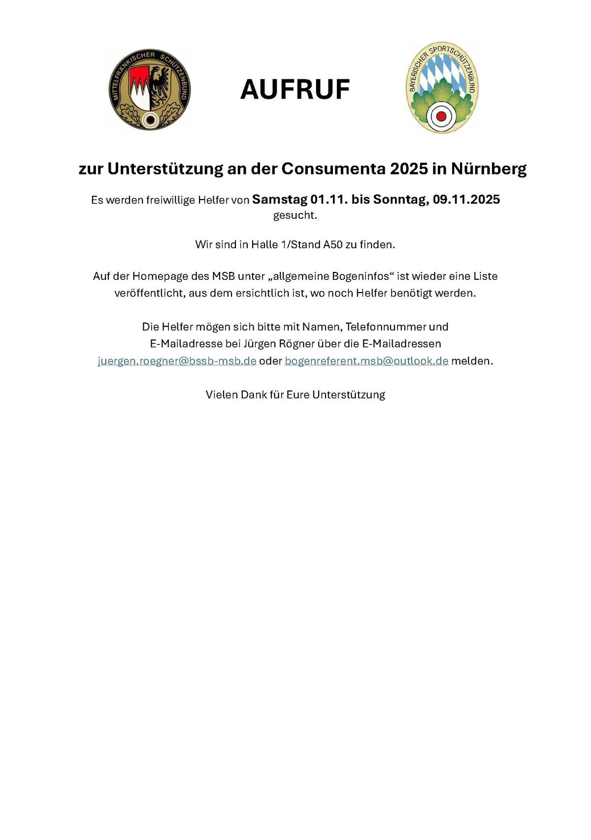 Helfer mögen sich bitte bei Bogenreferent, Jürgen Rögner melden.