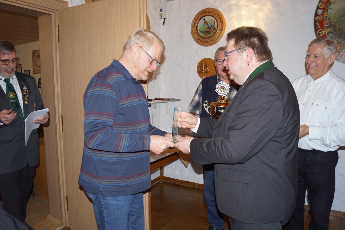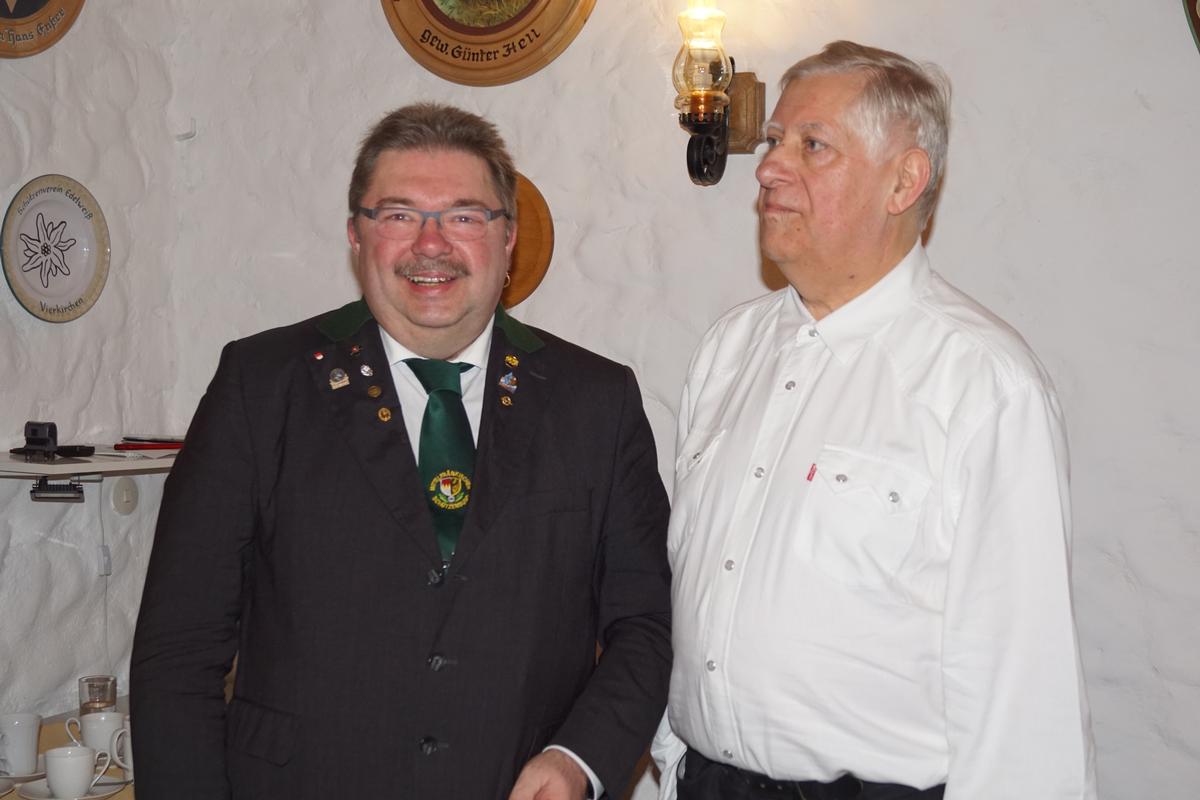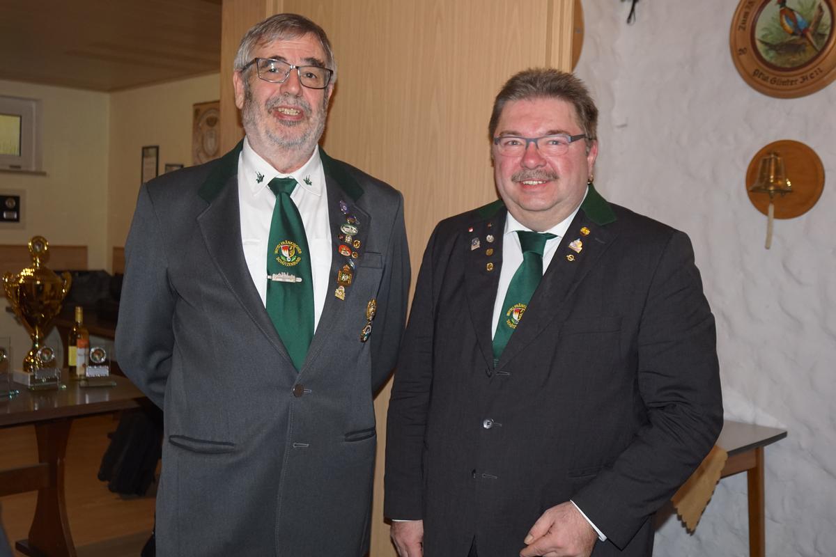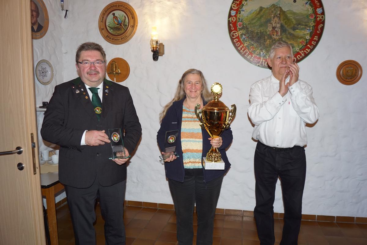 Auch Gerold Ziegler, MSB Ehrenpräsident (rechts im Bild neben Markus Harrer), war gerne nach Wendelstein gekommen, denn wie immer überreichte er die von seinem Vater Rudolf Ziegler und ihm gestifteten Pokale persönlich. Außerdem nutzte er die Gelegenheit, um bei den Anwesenden für eine Mitglied-schaft im Mittelfränkischen Schützenmuseumsverein Wer-bung zu machen. Der Jahresbeitrag beträgt nur 18,-- Euro und jedes Mitglied mehr helfe dem Verein auf einen guten Weg hin zu einer möglichen Förderung und zur Beantragung von Zuschüssen. Außerdem rief er nochmals dazu auf, zu Hause nach Exponaten in Form von Dias, Fotos oder Filmen zu suchen. Hiermit auch unser Aufruf an alle unsere Leser, sich unbedingt bei Gerold Ziegler zu melden, sollten sie derartige Schätze hüten.